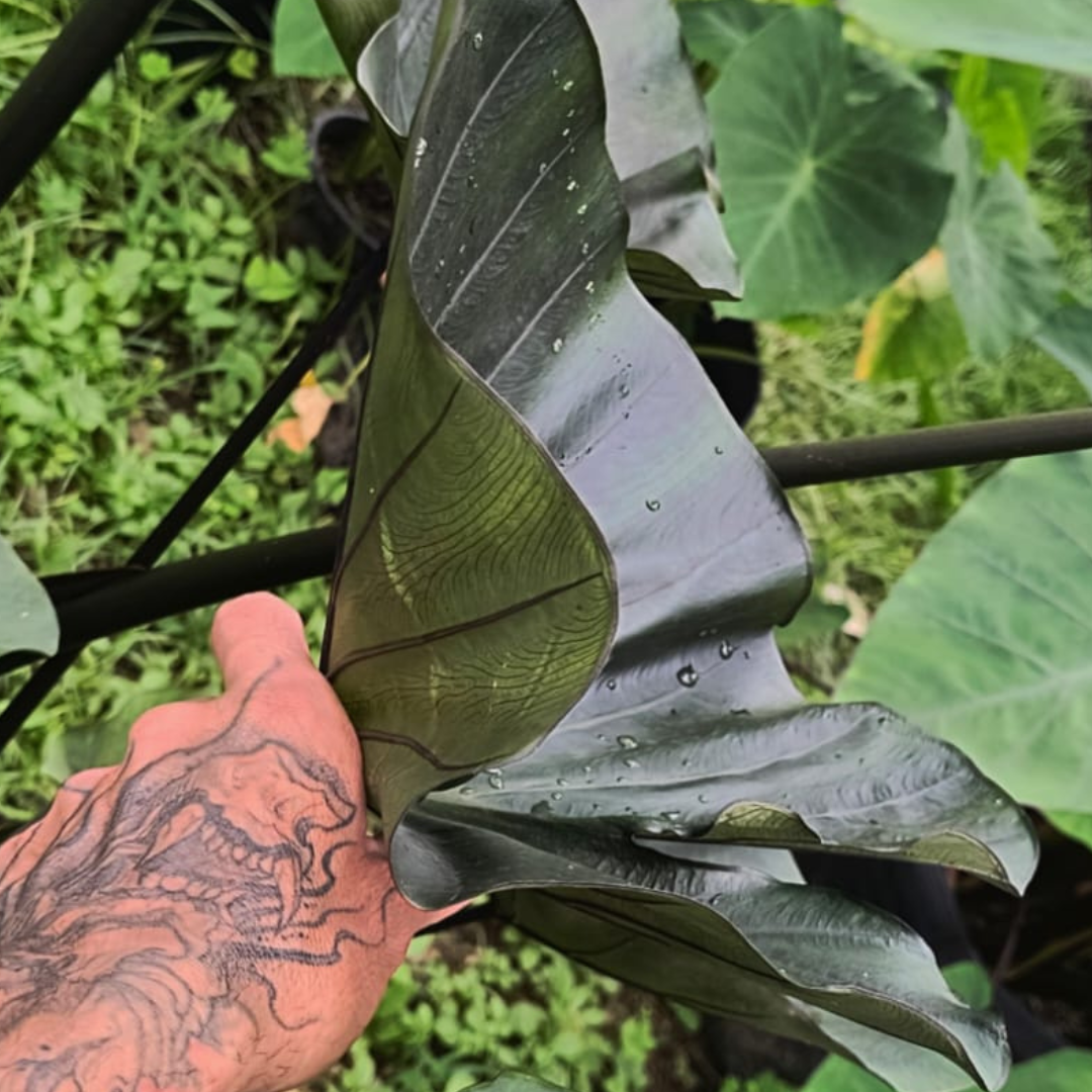 A Colocasia 'Tea Cup' é uma variedade de planta da família Araceae conhecida por suas folhas grandes e distintivas em forma de xícara ou tigela. Suas folhas têm uma forma arredondada e côncava, criando uma aparência semelhante a uma xícara de chá ou tigela. Esta variedade é valorizada como planta ornamental por sua folhagem única e elegante, adicionando um toque de originalidade a jardins tropicais ou paisagens de inspiração exótica. Assim como outras variedades de Colocasia, a 'Tea Cup' prefere condições de crescimento úmidas e bem drenadas e prospera em áreas com sombra parcial a pleno sol. É uma planta ornamental popular para jardins paisagísticos ou recipientes em pátios e varandas, proporcionando uma dose de charme e beleza exótica ao ambiente.